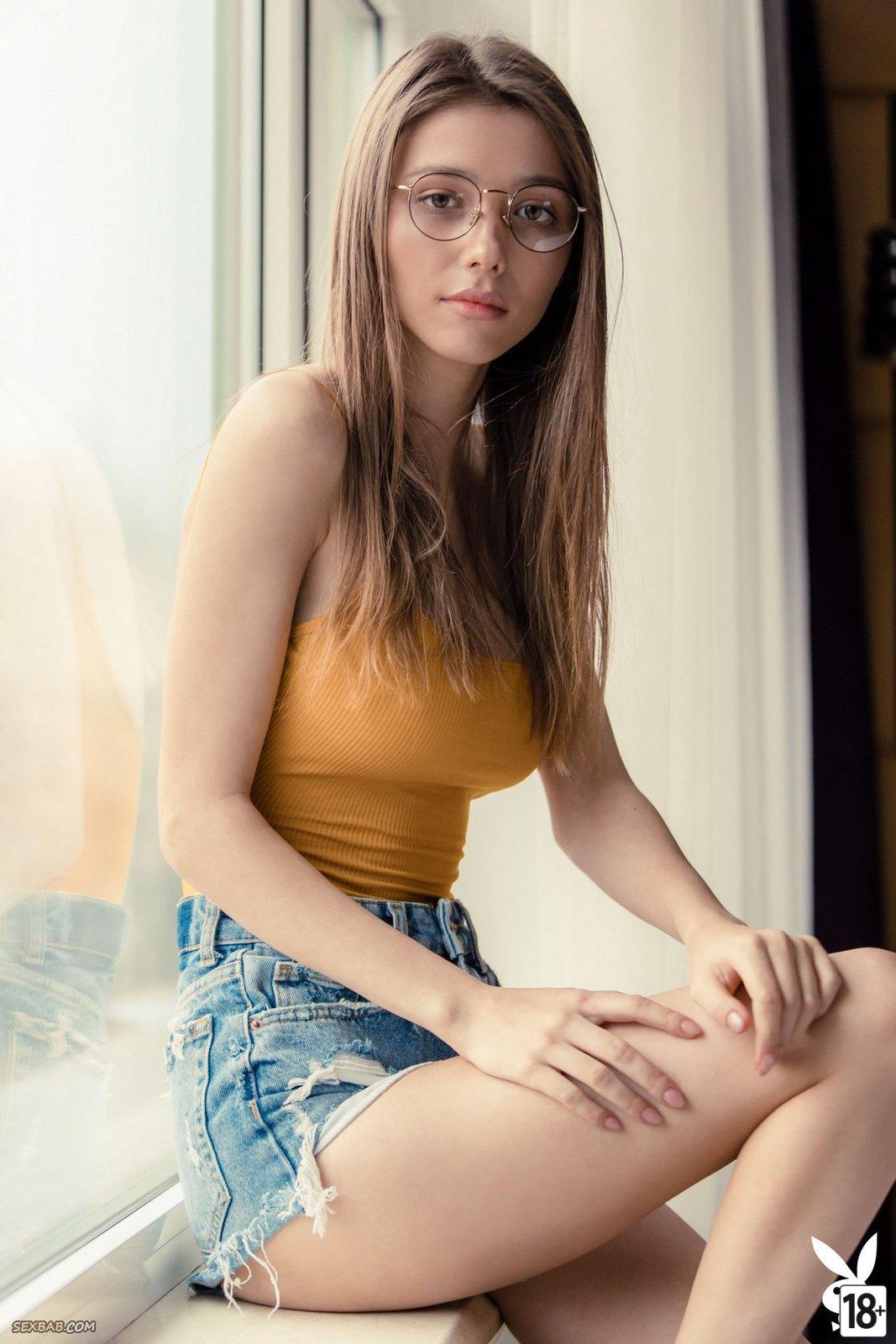 Фото с подоконника заставляет задуматься о том, насколько безумно может быть жарко, когда модная студентка в очках нагло оголяет свою натуральную грудь. Ее движения и взгляды словно говорят: Посмотри, насколько я распоясана. А вот этот момент, когда она нежно касается